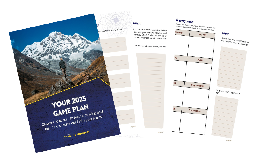 Powerful questions to reflect on 2024 and plan for an incredible 2025 with your business. This 36-page results-focused guide takes you through a proven planning process, helping you set meaningful goals and create a practical action plan to bring them to life in the year ahead.